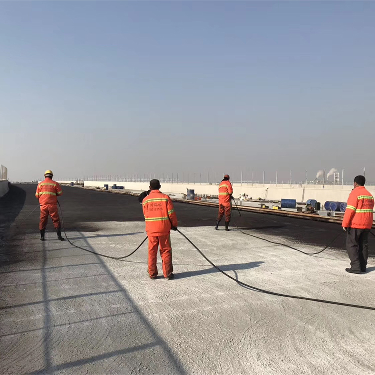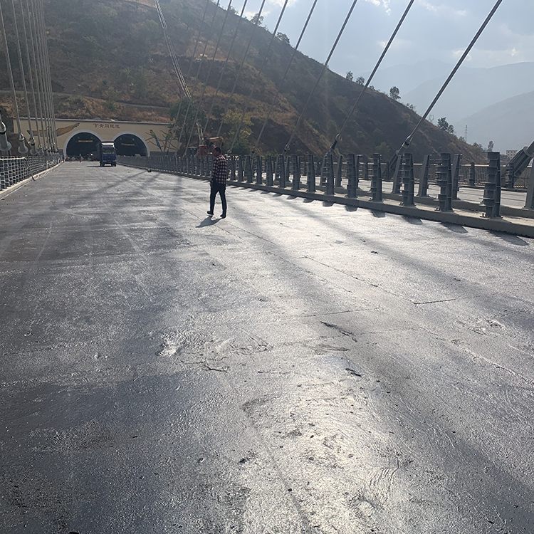 环氧沥青防水层是高分子聚合物改性沥青防水涂料系列产品,属水泥混凝土桥面防水粘结材料。该产品是由环氧树脂、煤焦沥青、石油沥青等材料经过乳化混配,用水做介质,配制而成的水溶性沥青防水涂料。产品经过部门检测,全部指标符合DB32/T2285-2012规范要求,达到国内同类产品优良水平。该涂料涂膜干燥后具有较好的力学性能,剪切强度大,粘结力强,高温性能好,不发软,不发粘等特点;另外还具有低温柔韧性,不透水性强,抗硌破性好等优点。水性环氧沥青桥面防水涂料具有良好的路用性能和施工性能,其应用可以提高桥面铺装的整体性能,延长桥面铺装使用质量,是目前国内比较理想的水泥混凝土桥面防水粘结材料。