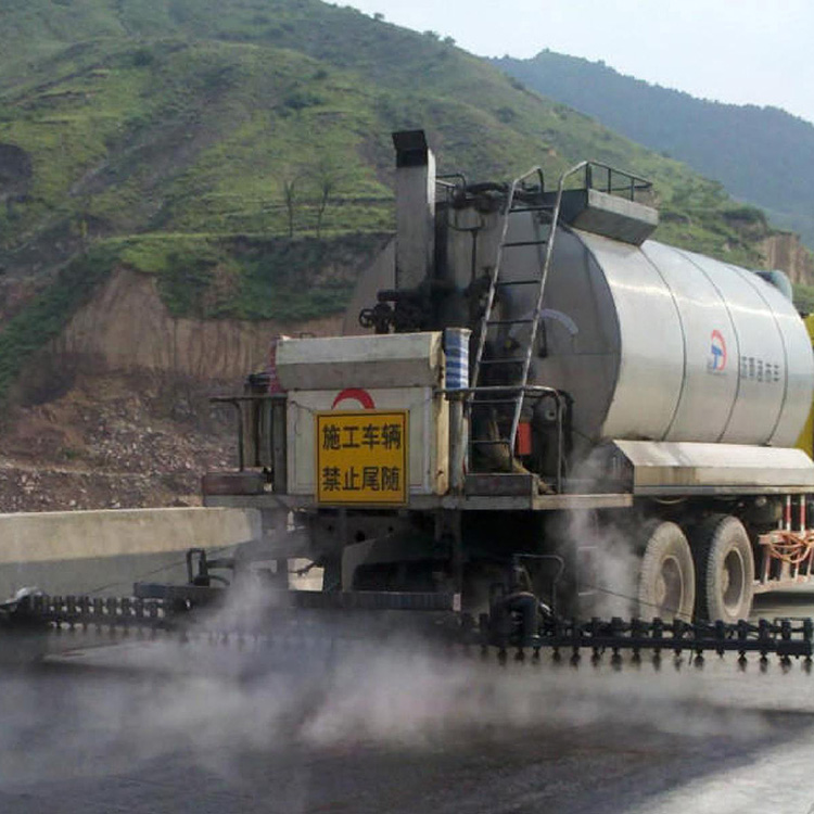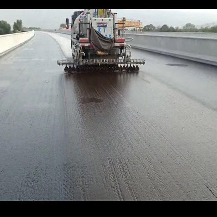 2、粘层油必须采用智能型沥青洒布车喷洒,并选择适宜的喷嘴,洒布速度和喷洒量保持稳定。喷洒时必须成雾状,严禁运料车外的其他车辆和行人通过。3、粘层油必须在沥青混合料摊铺前12小时,不超过24小时洒布,待乳化沥青破乳、水分蒸发完成,或稀释沥青中的稀释剂基本挥发完成后,紧跟铺筑沥青面层,确保粘层不受污染。