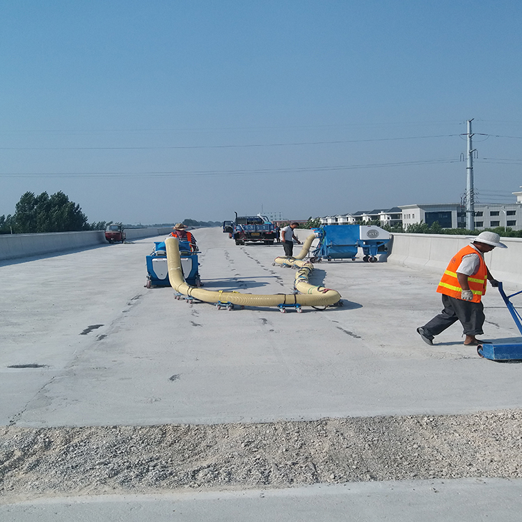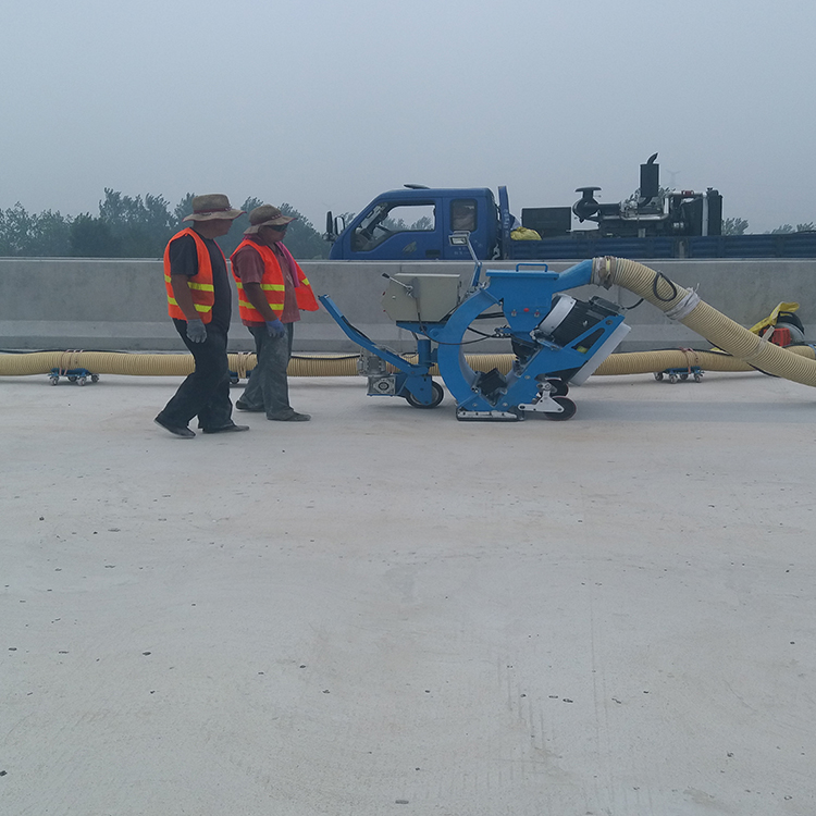 2。桥面抛丸处理设备采用浮泥和集尘同时去除的设备,桥面混凝土路面采用带驱动系统的自循环抛丸处理设备。抛丸机的速度为2~3个齿轮,行走速度为5~10m/min。