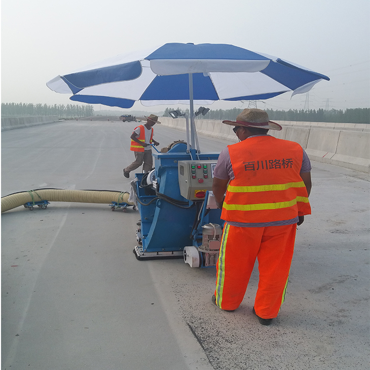 2。桥面抛丸处理设备采用浮泥和集尘同时去除的设备,桥面混凝土路面采用带驱动系统的自循环抛丸处理设备。抛丸机的速度为2~3个齿轮,行走速度为5~10m/min。